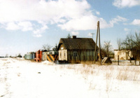 Pocztówka - Lokomotywa Lxd2 z pługiem odśnieżnym - Jędrzejowska Kolej Dojazdowa